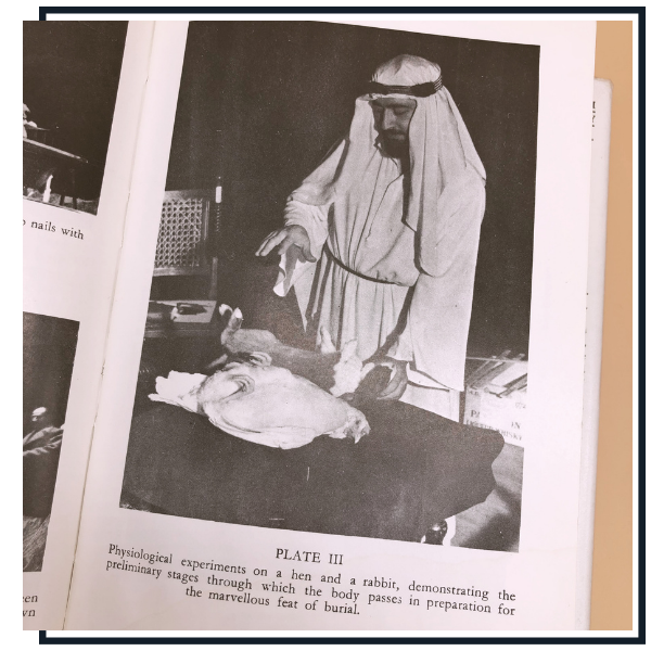 As such, Cannon is confident in sharing the latest and greatest Eastern secrets for his medical and Magic Circle peers and critics: at the book’s centre is a photographic account of a sombre burial stunt, complete with ‘sacrificial’ livestock. While acknowledging that fraud and misinformation are rife in ‘miracles’ such as the Indian Rope Trick, he seems determined to present, say, a unique Fakir or extreme breath-control feat as Science. Squabbling over the procurement of human body parts and/or sufficient ganja-spliff to authentically reproduce the famed ‘boy falls from the sky’ illusion must have become a fixture for the Magic Circle’s Occult Committee. Some magicians sought a snazzy trick for a garden party; Cannon was seeking out “Aryan Hindoos” who, be it by telepathy or the wonders of weed, were in receipt of sensitive gossip before the British government. Bah!